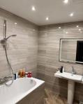 В квартирі є Телевізор, Шафи, Холодильник, Ліжко, Пральна машина з сушкою, Мікрохвильовка, духова шафа, Індукційна плита, Кондиціонери, Сигналізація, Лічильники, Душова кабіна, Посудомийна машина.