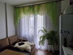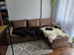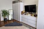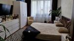 – Кімната: кутовий диван із нішею для білизни, двоспальне ліжко (2.00×1.80), дві великі шафи, комод, приліжкові тумбочки