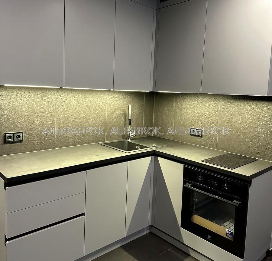 Стильна кухня-студія з дизайнерським ремонтом, виконаним з якісних матеріалів.