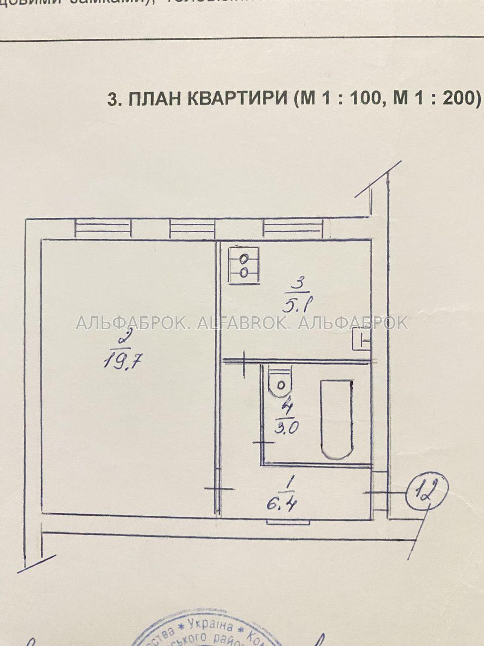 Квартира розташована по вулиці Скрипника, 1 в Соломянському районі.