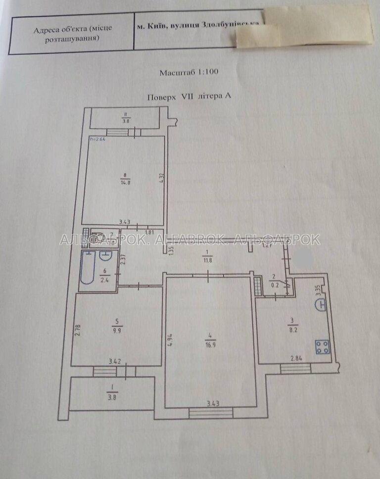 Продаж 3к квартири на вул. Здолбунівська 7А. на 7 поверсі 9-поверхового будинку. 3 окремі кімнати + кухня. По техпаспорту загальна площа 72, 8 кв м.