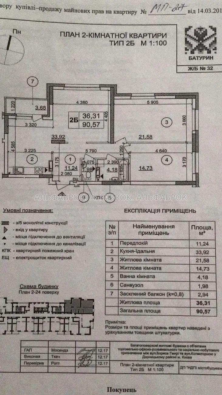 ЖК "Патріотика". Будинок 32, "Батурин". 90.57 кв.м., 10пов. 2 кімнати, є можливість перепланувати на 3-кімнатну квартиру.