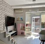 Планування: 1 поверх - передпокій, санвузол з душовою кабіною, кухня вітальня з виходом на задній дворик площею 2*9 м (укомплектована побутовою технікою марки SIEMENS, мікрохвильова піч, духова шафа, посудомийка, холодильник з морозильною камерою). 2 поверх - дитяча кімната з великою вбудованою шафою, радіатори, спальня з місцем під вбудовану шафу-купе, радіатори, кондиціонер, санвузол з ванною.