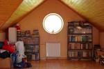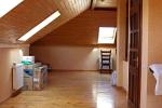 Под мансардной кровлей утепленной и обшитой вагонкой "смерека", пол "смерека" (палуба) - этаж отапливаемый свободной планировки. У нас применен под спортзал. На этаже 9 мансардных окон (Rota).