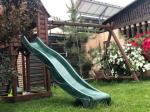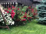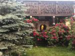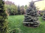 Основная часть территории под газоном, облагорожен автоматическим поливом, Есть огород с клубникой, смородина + зелень. Украшен кустами роз, голубые эли, сосны, туи, можжевельник. Есть навес для автомобилей с автоматическими воротами + детская площадка, мангальная