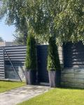 10. По периметру встановлено паркан із металопрофілю товщиною 0,5мм; Тротуарною плиткою 6 см викладено доріжки та майданчик для автомобіля; Встановлено хвіртку та відкатні ворота з автоматикою Nice виробництва Італії.