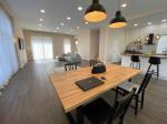 1-й поверх: простора кухня-вітальня (50,5 м²), санвузол (3,4 м²), сауна (5,4 м²), коридор (8,3 м²), котельня-постірочна (4,1 м²), кладова (3,5 м²), тераса
