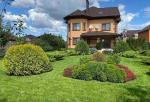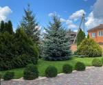 По всей территории - тротуарная плитка и ландшафтный дизайн с фруктовым садом и системой авто полива.