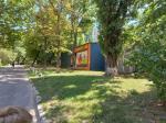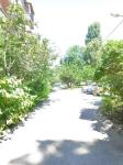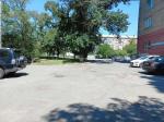 Тихий двор, есть детская площадка и стадион ограждён сеткой.