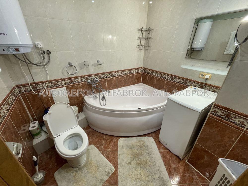 Квартира повністю мебльована та оснащена технікою — холодильник, пральна машина, кондиціонер, мікрохвильова, телевізор, пилосос, праска, чайник, аудіосистема, посуд.