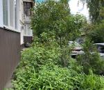 У дворі є дитячий майданчик, багато зелені