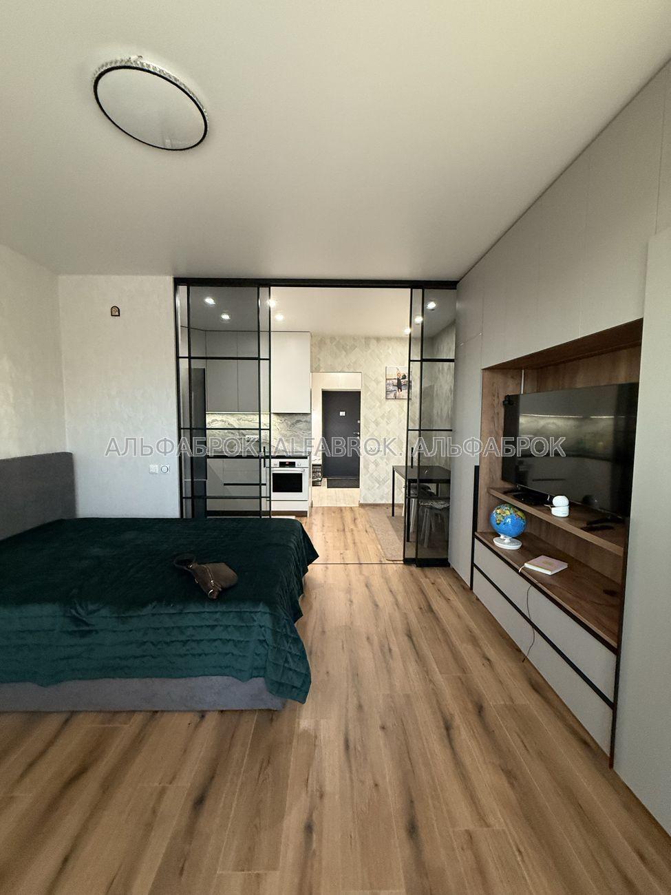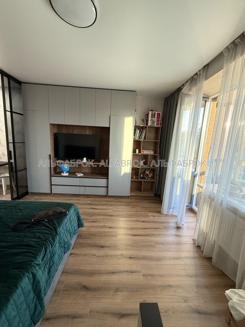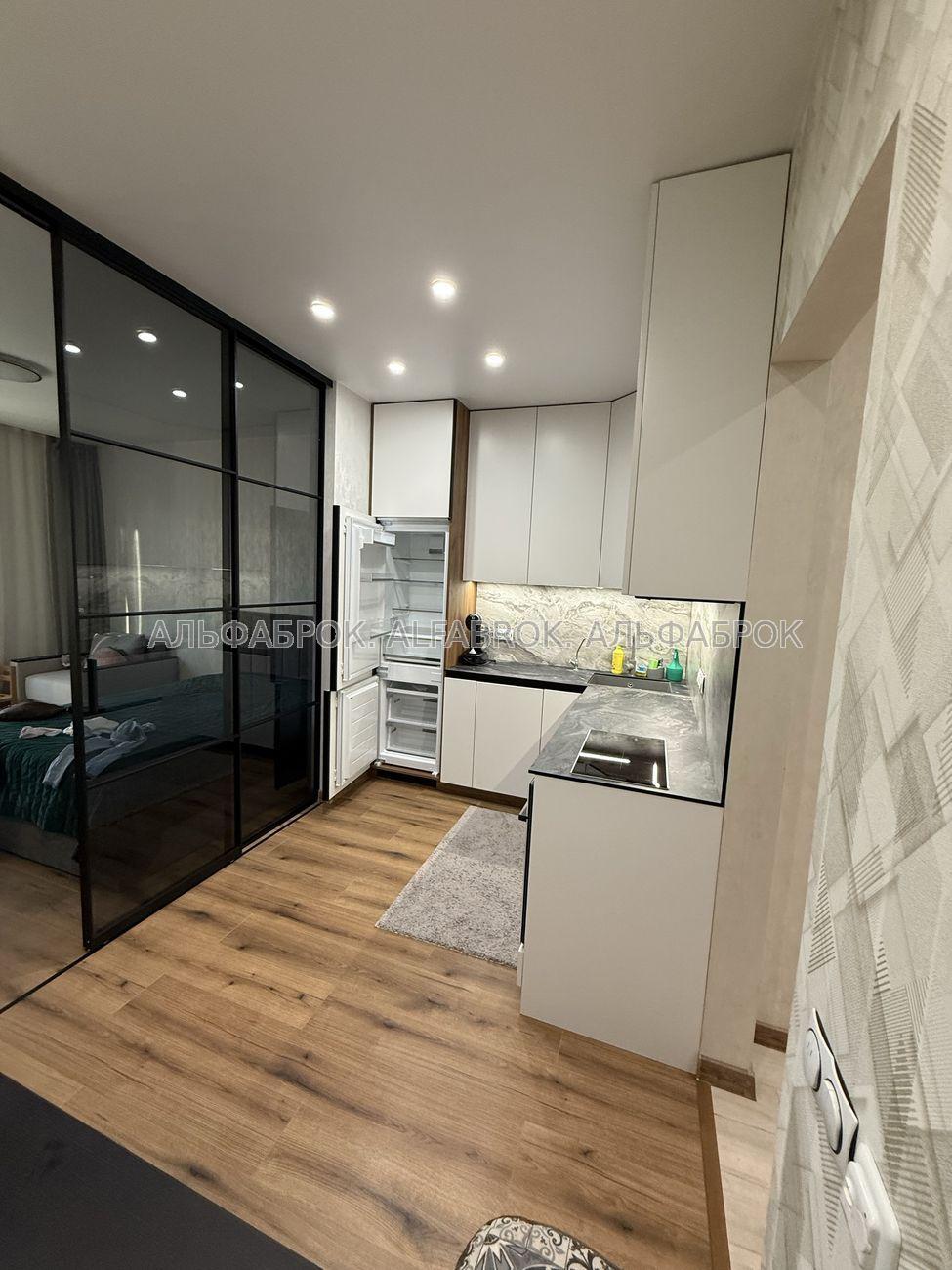Продається стильна 1-кімнатна квартира-студія у клубному будинку Greenwood, Київ (поруч метро Лісова). Локація: екологічно чистий район серед соснового лісу, де поєднується спокій природи та зручність міської інфраструктури. Площа: 34,6 м². Формат: студія з продуманим зонуванням та лофт-перегородкою. Дизайн і облаштування Квартира виконана у сучасному мінімалістичному стилі з використанням якісних матеріалів. • Світлий ремонт, продуманий до дрібниць. • Меблі на замовлення: двоспальне ліжко з підйомним механізмом та великою нішою для білизни, дві місткі шафи, ТВ-зона з функціональними нішами та полицями. • Розумне освітлення з кількома сценаріями для роботи, відпочинку та вечірнього настрою. • Тепла підлога, іспанський кахель у сучасних відтінках. Технічне оснащення Квартира повністю готова для проживання: • Вбудована побутова техніка Bosch (посудомийна машина, пральна машина, варильна поверхня, духова шафа, холодильник, бойлер). • Сучасна ванна кімната з повнорозмірною ванною, душовою перегородкою та системами зберігання. • Якісна сантехніка, преміальні оздоблювальні матеріали. Переваги локації • Поруч сосновий ліс – ідеальне місце для прогулянок, пробіжок, йоги чи роботи на свіжому повітрі. • Атмосфера клубного дому: мінімум сусідів, максимум приватності й тиші. • До метро Лісова – лише 3 хвилини на авто. • Неподалік: магазини, кав’ярні, зупинки транспорту.