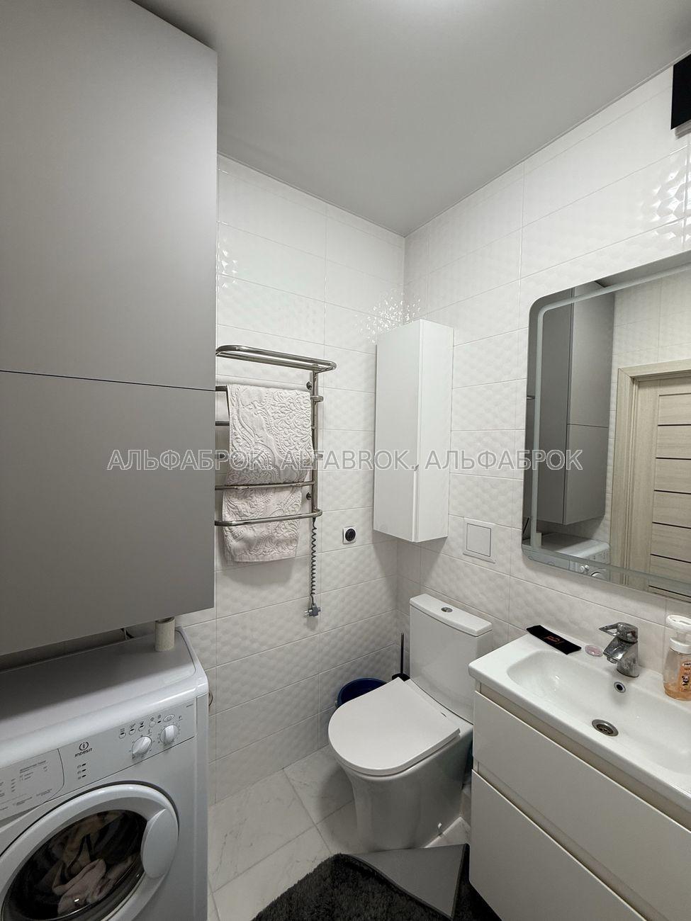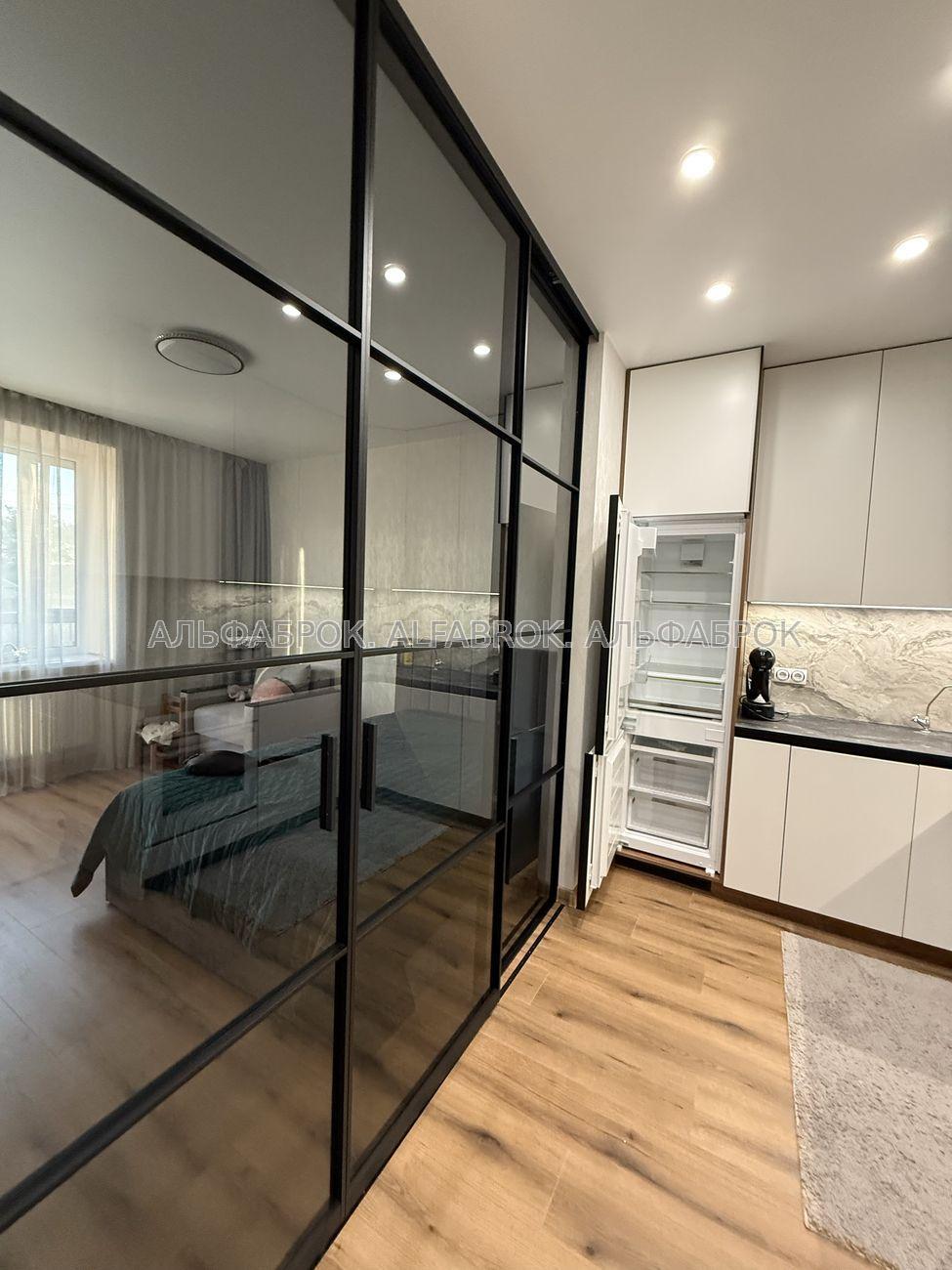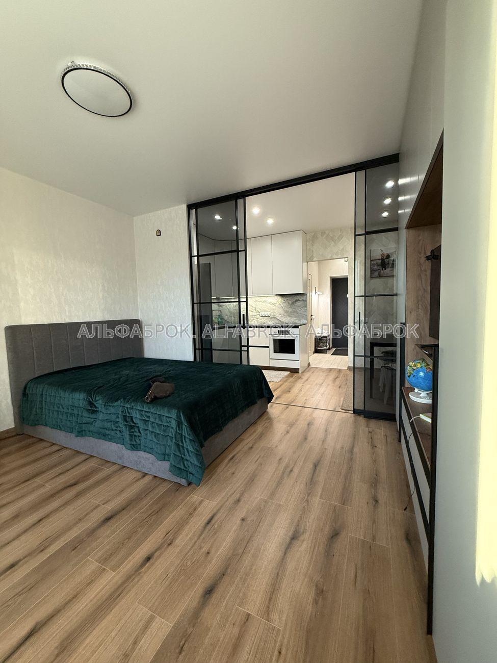 Продається стильна 1-кімнатна квартира-студія у клубному будинку Greenwood, Київ (поруч метро Лісова). Локація: екологічно чистий район серед соснового лісу, де поєднується спокій природи та зручність міської інфраструктури. Площа: 34,6 м². Формат: студія з продуманим зонуванням та лофт-перегородкою. Дизайн і облаштування Квартира виконана у сучасному мінімалістичному стилі з використанням якісних матеріалів. • Світлий ремонт, продуманий до дрібниць. • Меблі на замовлення: двоспальне ліжко з підйомним механізмом та великою нішою для білизни, дві місткі шафи, ТВ-зона з функціональними нішами та полицями. • Розумне освітлення з кількома сценаріями для роботи, відпочинку та вечірнього настрою. • Тепла підлога, іспанський кахель у сучасних відтінках. Технічне оснащення Квартира повністю готова для проживання: • Вбудована побутова техніка Bosch (посудомийна машина, пральна машина, варильна поверхня, духова шафа, холодильник, бойлер). • Сучасна ванна кімната з повнорозмірною ванною, душовою перегородкою та системами зберігання. • Якісна сантехніка, преміальні оздоблювальні матеріали. Переваги локації • Поруч сосновий ліс – ідеальне місце для прогулянок, пробіжок, йоги чи роботи на свіжому повітрі. • Атмосфера клубного дому: мінімум сусідів, максимум приватності й тиші. • До метро Лісова – лише 3 хвилини на авто. • Неподалік: магазини, кав’ярні, зупинки транспорту.