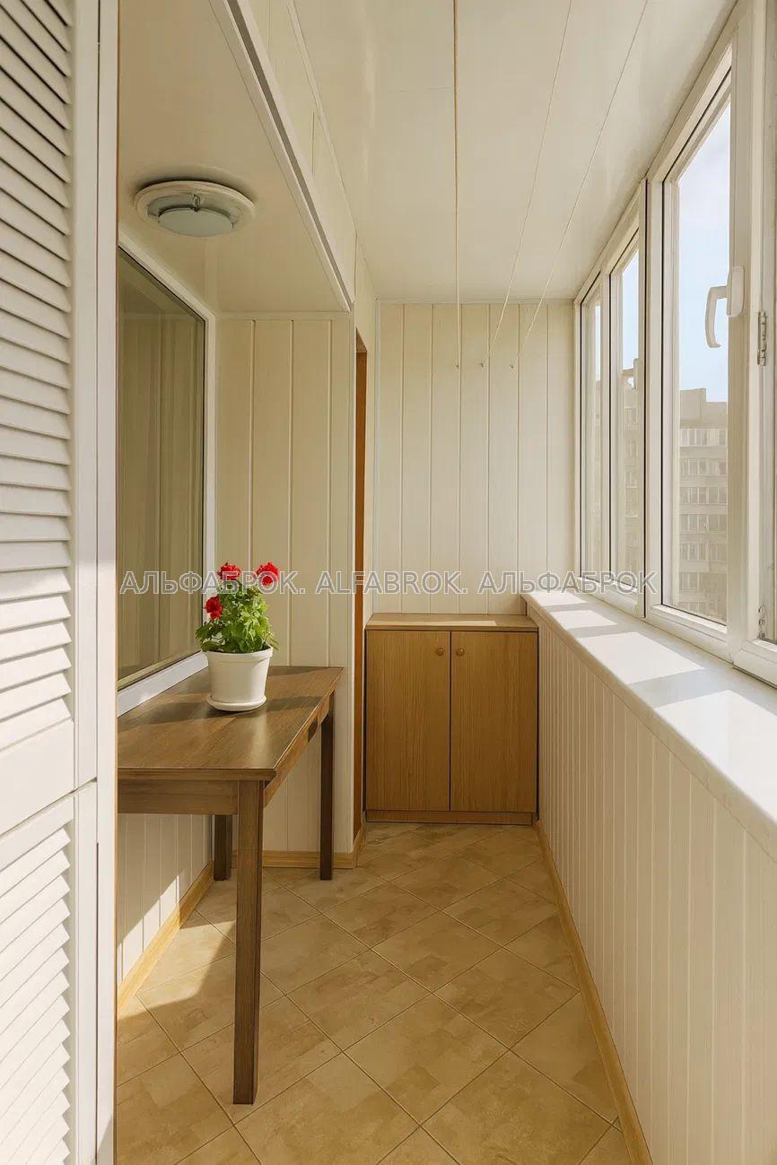 Простора подвійна лоджія з шкафчиками для зберігання речей.