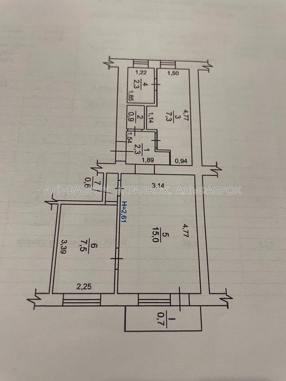 Особливості: Є балкон. Висота стелі – 2,61 м.