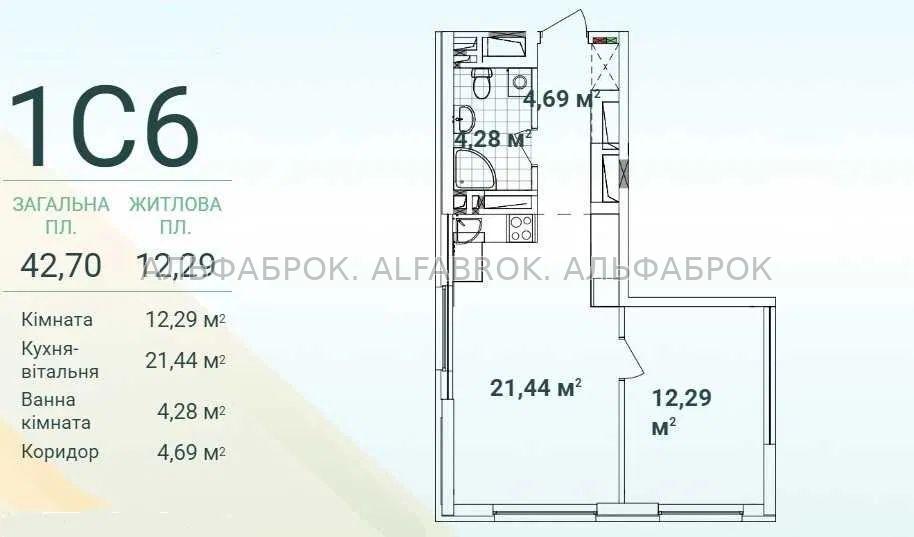 Продаж (перепоступка) однокімнатной квартири в ЖК Варшавський 3, будинок 10.4 17 поверх Тип планування: 1С6 Площа: Загальна - 42,7 Житлова - 12,29 Кімната - 12,29 Кухня-вітальня - 21,44 Санвузол - 4,28 Коридор - 4,69 Кухня-вітальня має два вікна. Резервне живлення, власна котельня.