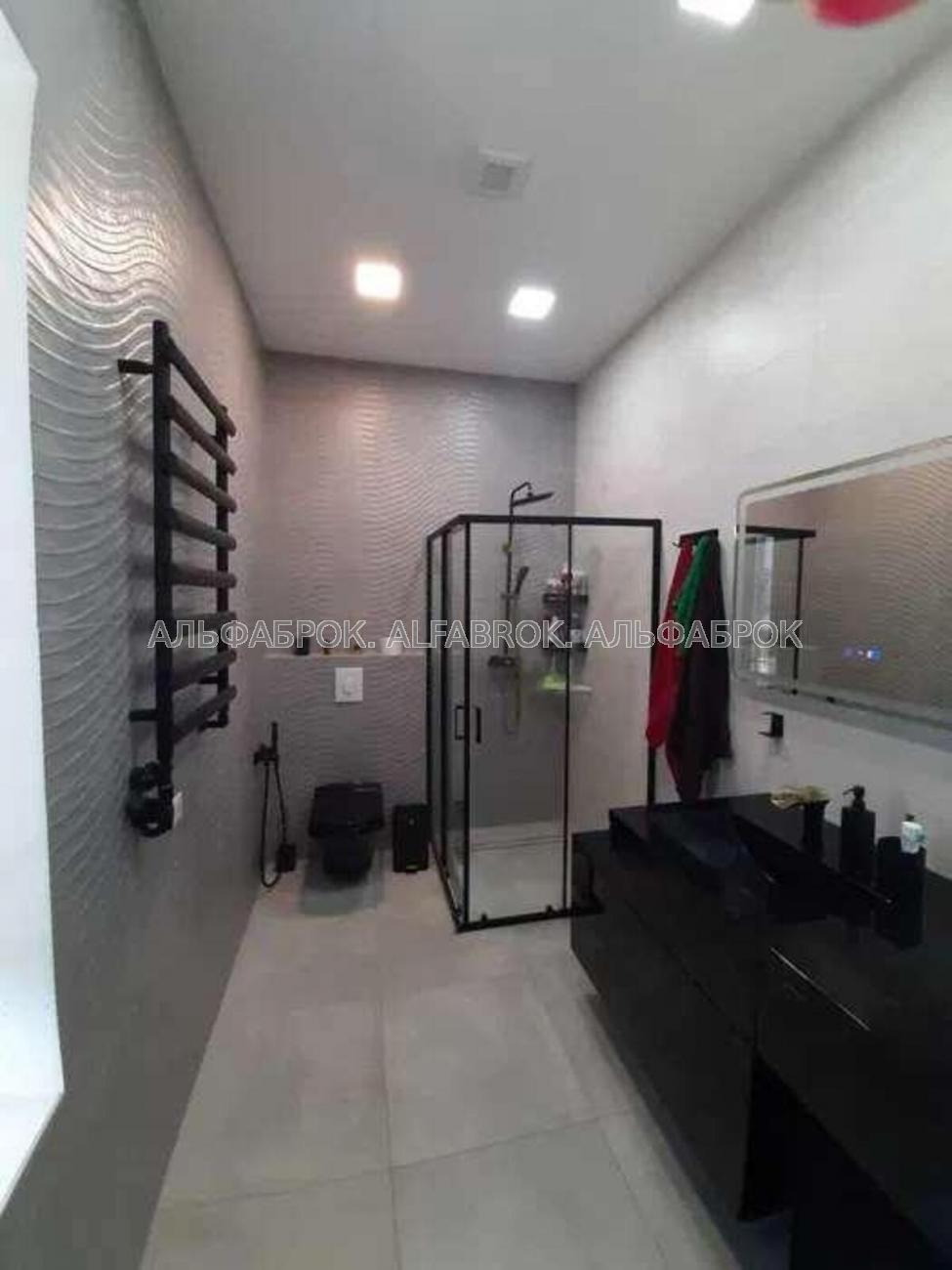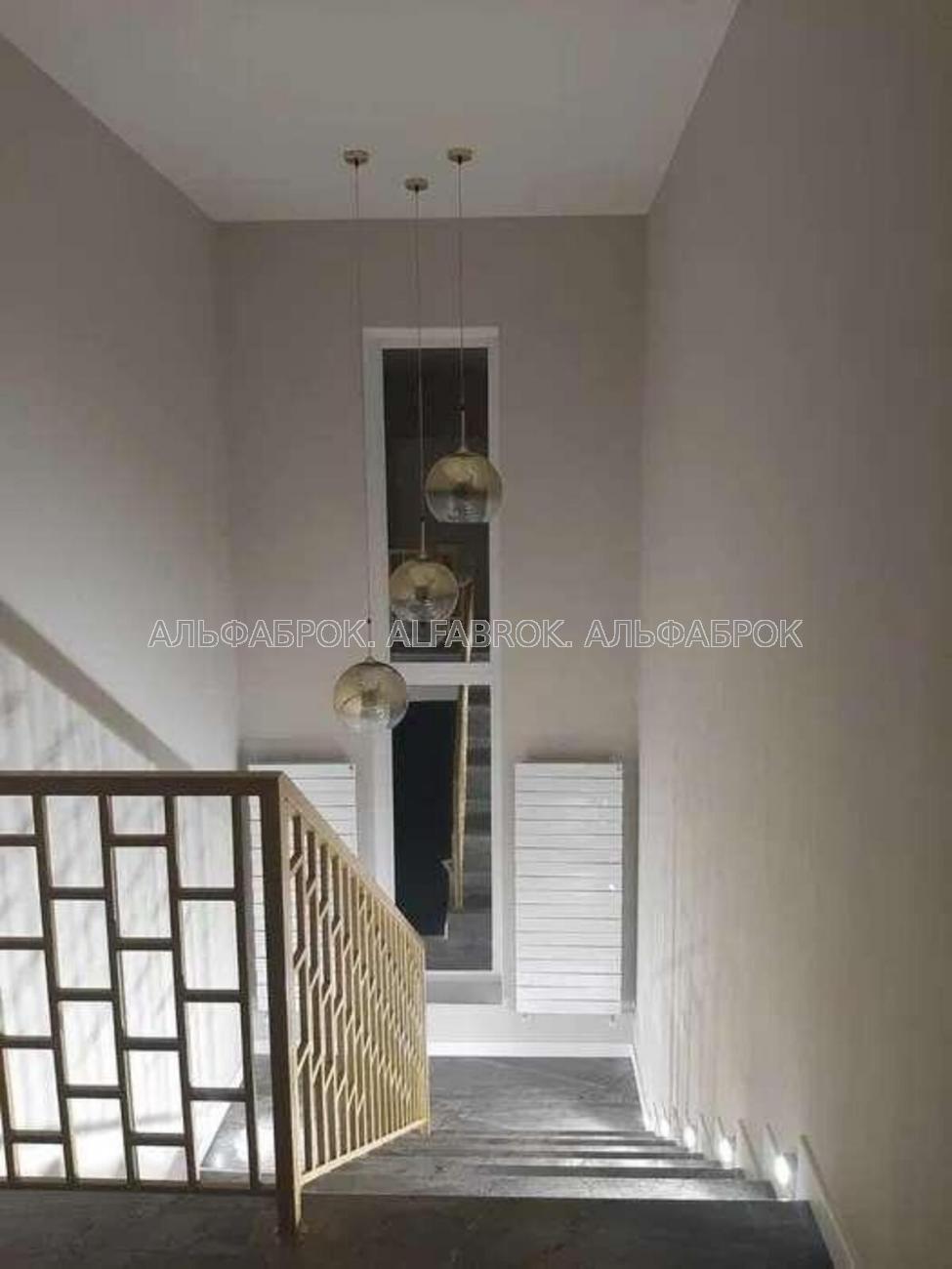 На першому поверсі розташована кухня - вітальня з виходом на терасу та каміном 60 кв.м, , кімната 22 м.кв. зі своїми окремими с\у та гардеробною, топічна.