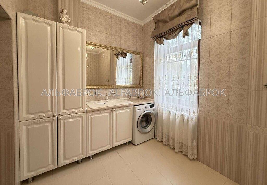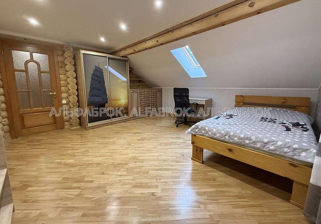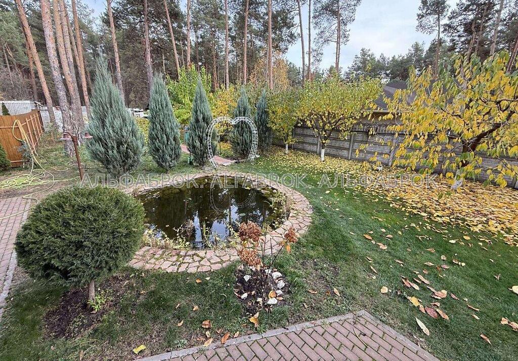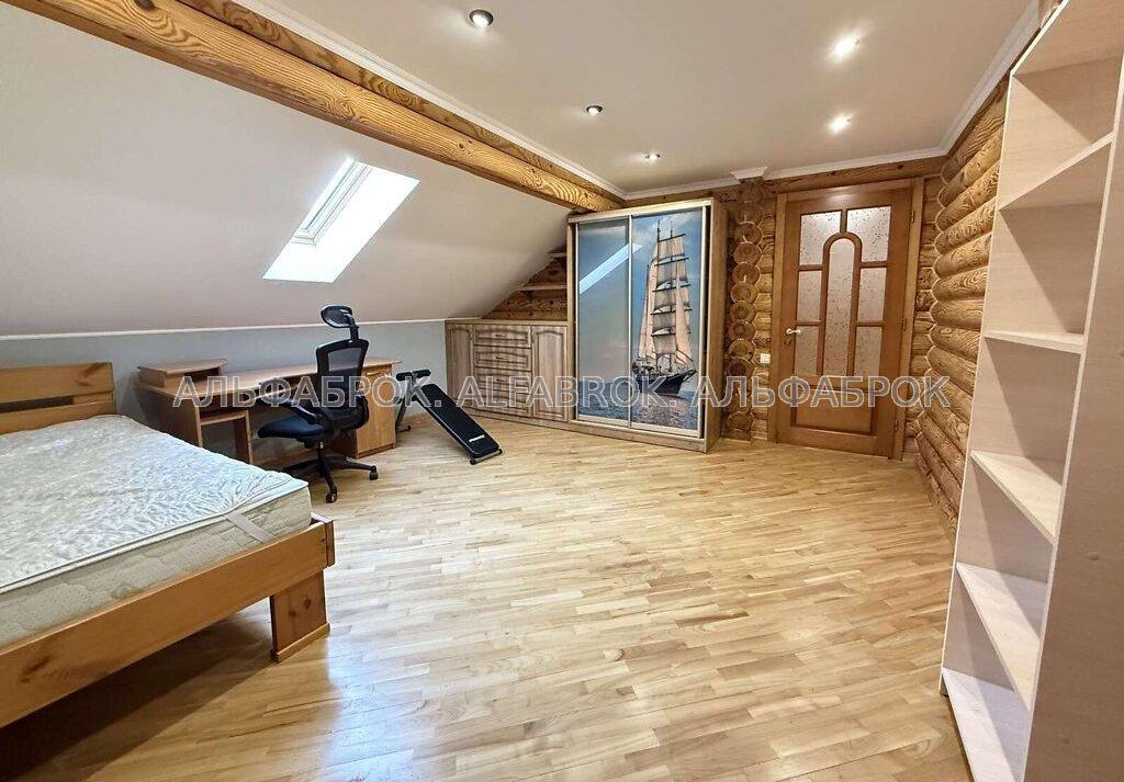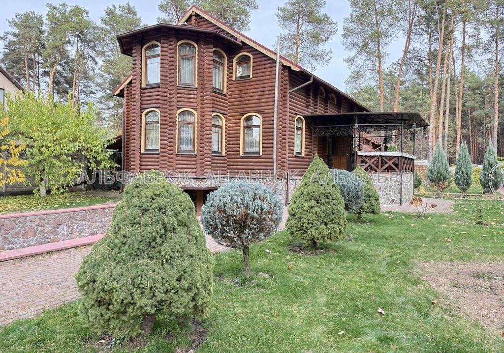 Деснянський р-н., Биківня, провулок Радистів Вашій увазі пропонується будинок в мальовничому місці, в самому серці соснового лісу на околиці міста Києва. Домоволодіння складається з двох будинків: основного будинку та гостьового. Будинки виготовленні із цільного бруса (не клеєний), мають екологічні властивості та добре зберігають тепло. Основний будинок має площу 300 кв.м та складається з 3-х поверхів. Перший поверх: простора кухня-вітальня з каміном, велика спальня кімната з власною гардеробною та вбиральнею, тераса для відпочинку; Другий поверх (мансардний): три спальні кімнати, лоджія, еркерна кімната (ігрова), кабінет; Цокольний поверх: гараж на два авто, 4 господарські кімнати. Гостьовий будинок має площу 100 кв.м та складається з 2-х поверхів. Перший поверх: кухня гостьова, простора вбиральня та сауна; Другий поверх: три спальні кімнати, вбиральня; Ділянка домоволодіння: 20 соток (дві ділянки по 10 соток). Комунікації: електрика - 25 кв.т, (день/ніч); вода - 2 свердловини 40 та 20 метрів (питна та технічна), каналізація - септик (два колодця по 12 кубів), опалення - твердопаливний котел, електро (тепла підлога перший поверх), сміття - баки, кожен тиждень машина. Перекриття - плити, стіни - сруб, висота стелі - 3 метри. Територія ділянки: декоративний ставок з рибками (карп Коі), гойдалка, фруктові та декоративні насадження, корабельна сосна. Поруч з будинком лісова зона, дуже гарна інфраструктура (кафе, магазини, аптеки, нова пошта, будівеліний гіпермаркет, Novus та багато іншого), чудова транспортна розв'язка, до центра міста 15 хвилин на авто, метро Лісова 5 хвилин.