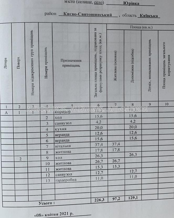 Будинок 226,3\97,2\20 кв.м., на першому поверсі вільне планування. Госп. блок розташований в окремій прибудові до будинку.