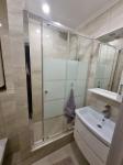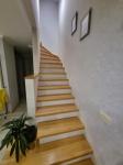 На первом этаже: 1 отдельная комната, кухня с гостинной, санузел с душ кабиной, второй этаж: две комнаты ( одна комната с балконом), общая ванная, третий этаж: две комнаты с санузлом и душевой кабиной.