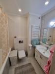 Общая площадь больше, так как с террасы сделали еще одну комнату, 5 комнат, кухня-студия, 3 санузла, два с душевыми кабинами, один с ванной.