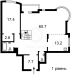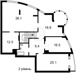 Общая площадь 236 кв.м. два уровня, жилая 111 кв.м, кухня 17 кв.м