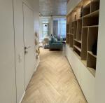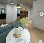 Основні переваги: Сантехніка преміум-класу: Grohe, Kludi; Підлога: керамограніт + кварцвініл “ялинка”. Стіни: італійська декоративна штукатурка, що миється та стійка до подряпин; Тепла електрична підлога у ванній кімнаті та на балконі; Балкон утеплений, з винесеним радіатором — можна використовувати цілий рік (зараз облаштований як кабінет); Стеля: комбінована — бетон, вкритий лаком, та гіпсокартон із фарбуванням (ніяких натяжних стель).