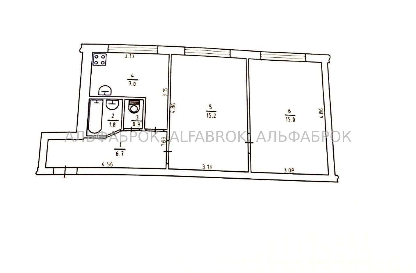 Квартира розташована на 1 поверсі 5 поверхового будинку. Загальна площа - 46,6 м2. Житлова - 30,2 м2. Кухня - 7 м2. Квартира розташована в будинку ( хрущовський проект).
