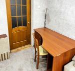 В квартирі - такі меблі : ліжко з ортопедичним матрасом, гостьовий діван, шафи для зберігання одягу.